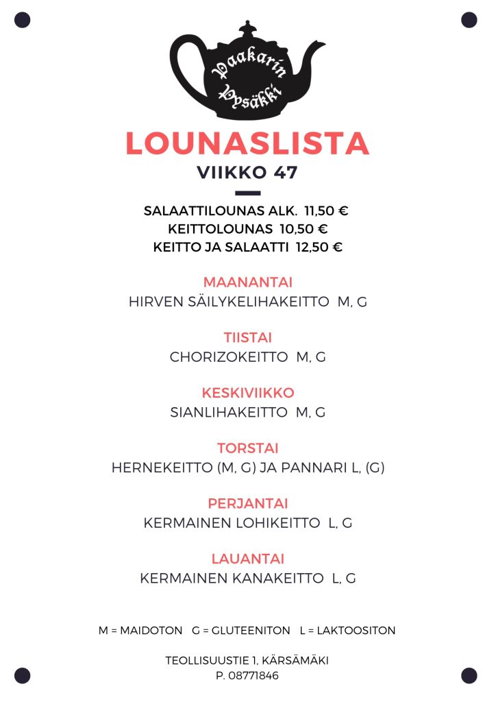 Tervetuloa Paakarin Pysäkille, jossa jokaiselle löytyy suolaista tai makeaa mahan töydeltä! Meiltä löydät tuoreet leivonnaiset ja oman leipomon tuotteet, sekä päivittäin vaihtuvan herkullisen keittolounaan. Kahvilastamme löydät ihanan valikoiman lahjoja ja tuliaisia vieraille tai kotiinviemiseksi.