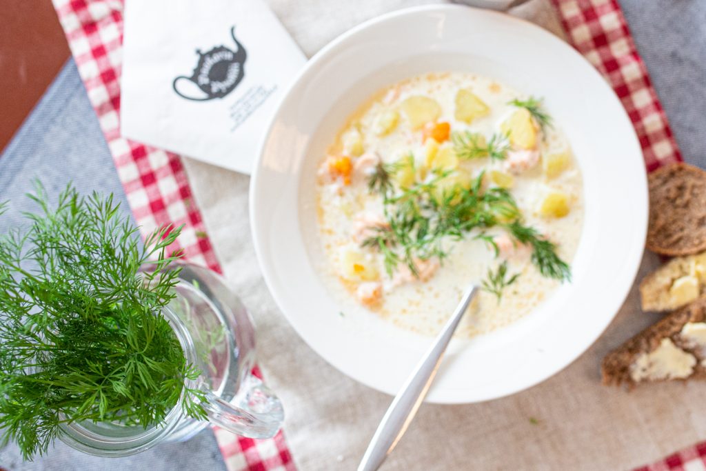 Paakarin keittolounas ja salaatti kahvilan noutopöydästä